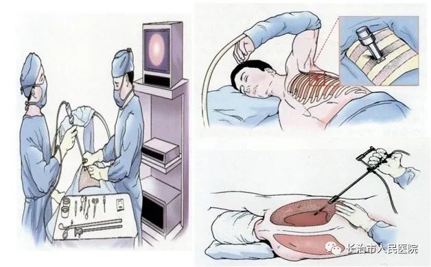 操作过程中,高栋材主任凭借丰富的经验,娴熟的操作技术,戳卡顺利进入患者胸腔,可见大量胸腔积液,充分吸引后按前后尖下左右依次观察胸膜腔,可见壁层胸膜沿肋间大量脂肪增生,膈肌表面可见较多大小不等结节增生,肺表面未见新生物。后给予膈肌表面结节反复钳取,送组织病理学检查,结束后末见出血,拔除戳卡,置入胸腔引流管,缝合切口,接引流瓶,无菌纱布覆盖,结束手术。检查过程中,各项操作有严密心电监护技术和抢救措施保障。