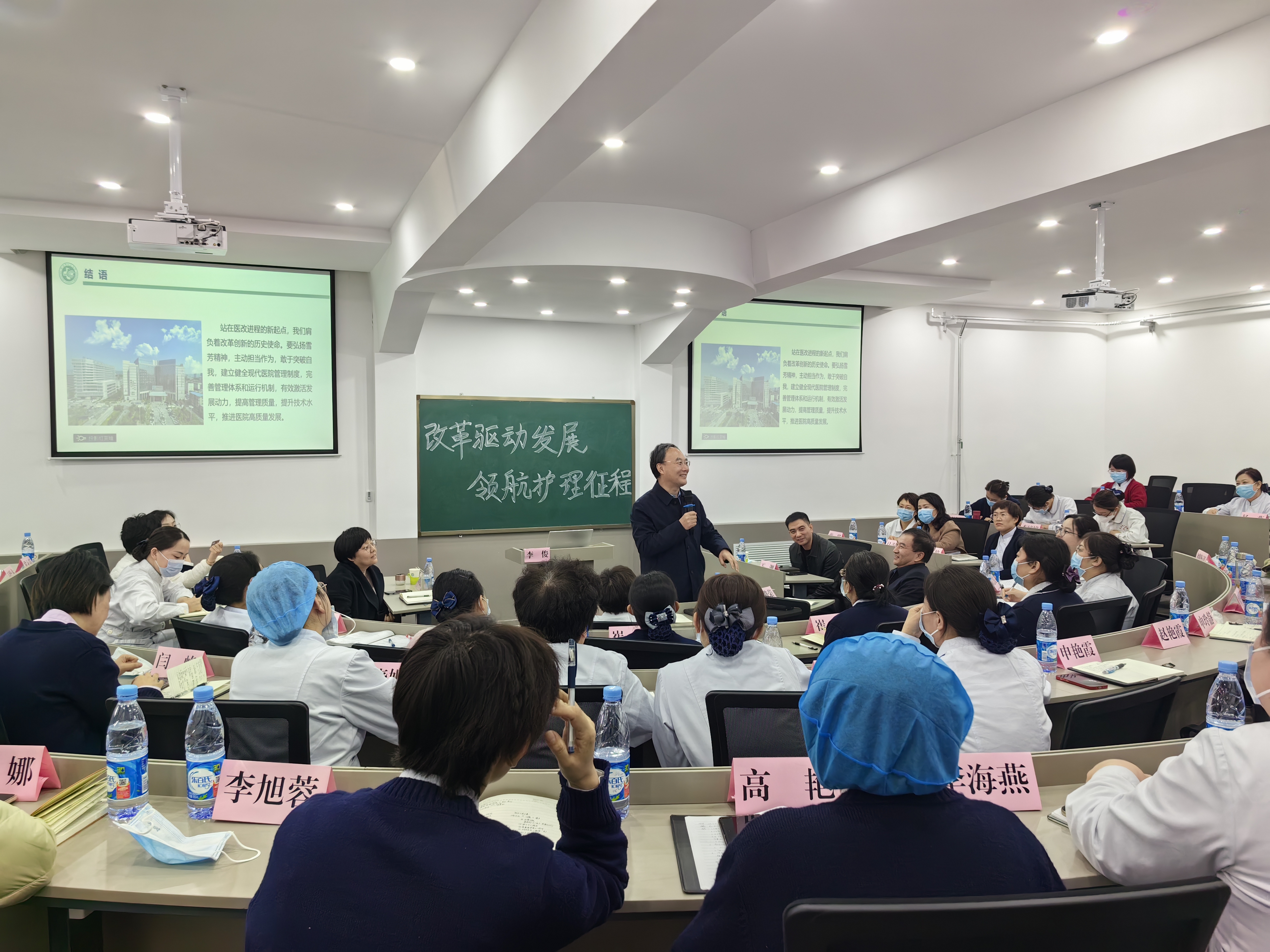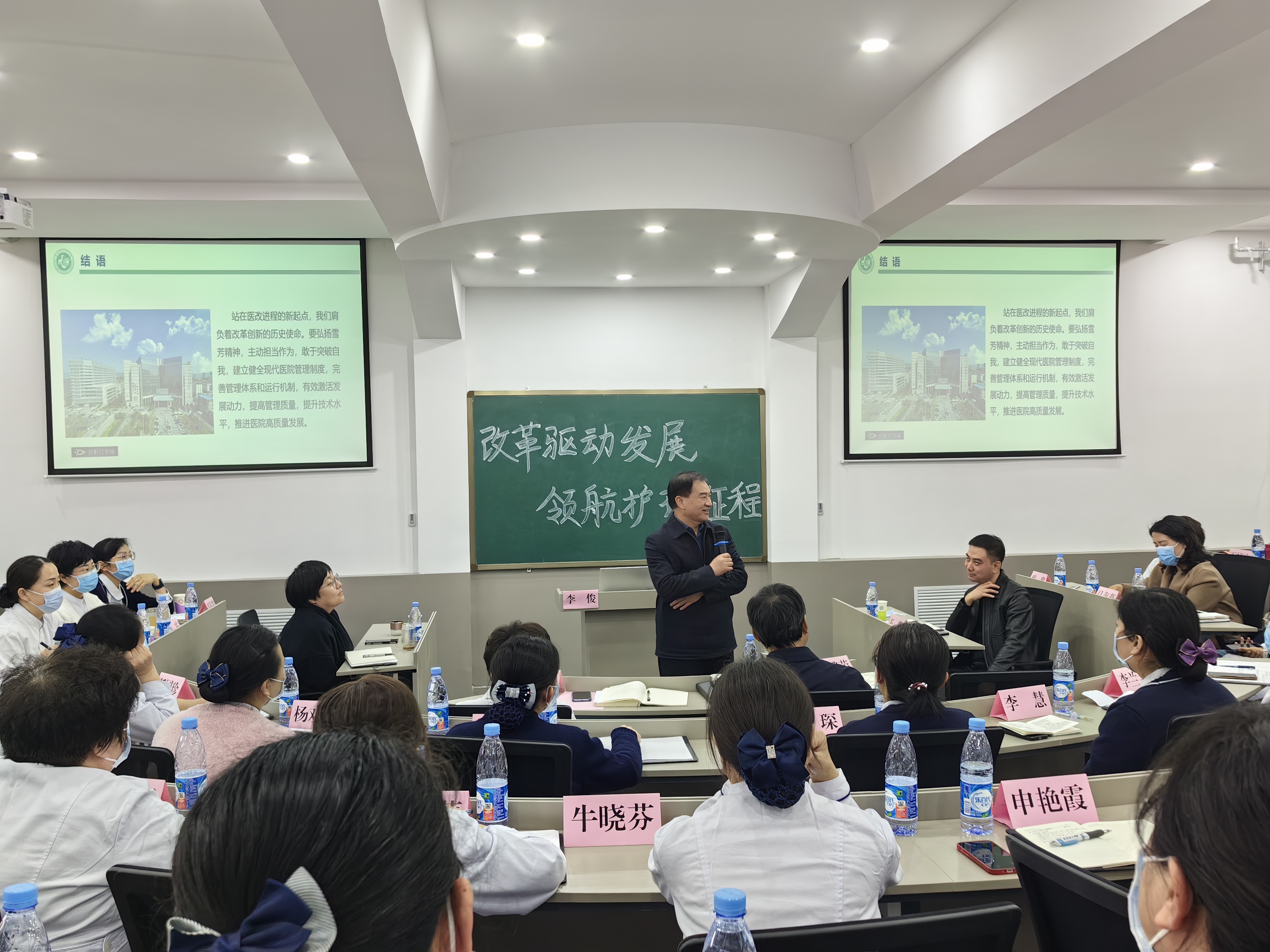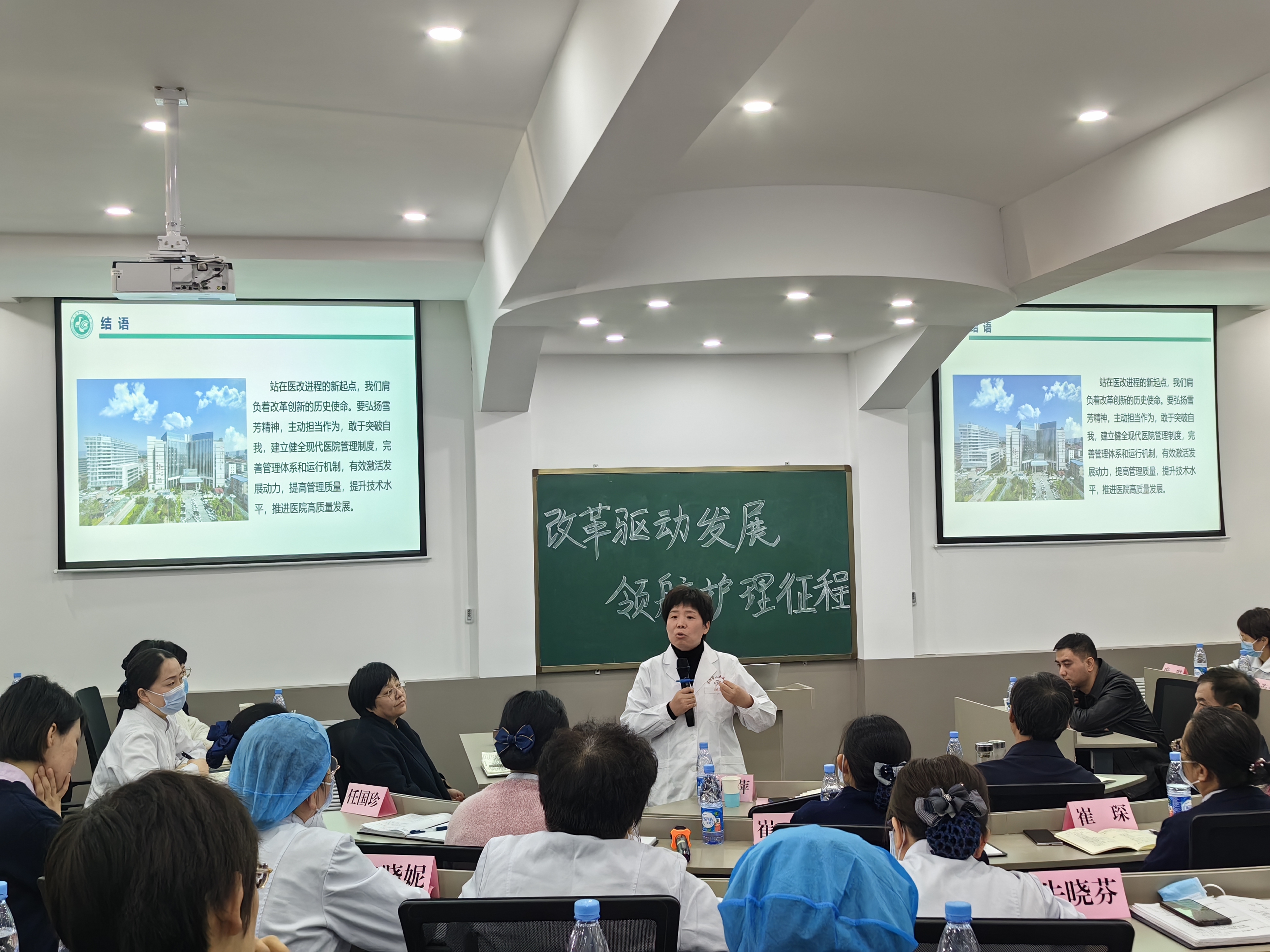 李俊书记做了题为《现代医院管理制度框架下的岗位管理制度改革》专题讲座,从岗位管理的背景、传统管理模式的弊端、岗位管理制度体系的基本内容、推进改革的关键要素等方面进行了深入浅出的讲解。希望大家工作中聚焦临床一线,多多关注患者需求,实现人员动态调配,不断提升管理能力,转变管理理念,建立护理垂直管理体系,进一步提升工作效能。李俊书记指出:站在医改进程的新起点,我们肩负着改革创新的历史使命,要弘扬雪芳精神,主动担当作为,敢于突破自我,建立健全现代医院管理制度,完善管理体系和运行机制,有效激活发展动力,提高管理质量,提升技术水平,推进医院高质量发展。