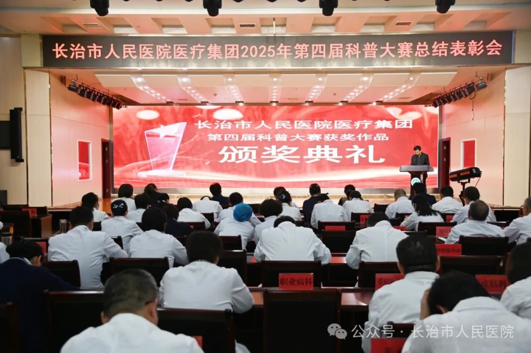 11 月 20 日,长治市人民医院医疗集团第四届科普大赛总结表彰会成功举办。医疗集团领导班子成员、中层干部及获奖代表参会,共同总结科普工作成果,表彰先进典型,凝聚科普传播合力,推动健康知识普及工作再上新台阶。
