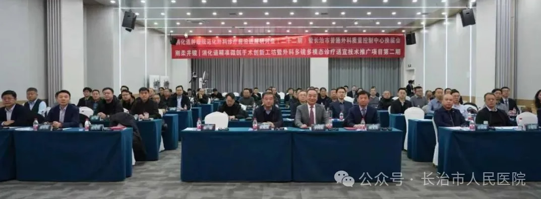 清华大学长庚医院医疗总监李国新教授致辞,,中国医学装备协会腔镜与微创技术分会副会长丁志良教授致辞,长治市人民医院党委书记胡文庆教授致辞,长治市人民医院名誉副院长连长红教授致辞,长治市人民医院质控部主任马晓燕主持。