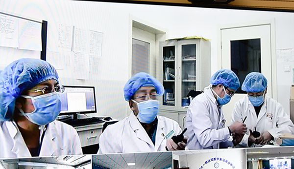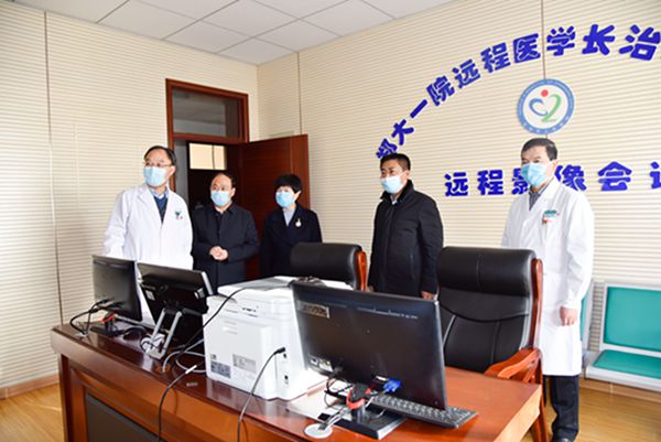 孙大军书记一行来到我院远程会诊中心,通过视频连线慰问奋战在疫情一线的医务人员,代表市委市政府和全市人民向隔离区医务人员致以崇高的敬意,感谢大家无惧危险、英勇奋战在疫情一线,并希望大家在救死扶伤的同时,务必加强自我防护,确保自身安全。市委市政府将和大家一起全力奋战,排除万难、共克时艰,坚决打赢这场疫情防控阻击战,以人民至上、生命至上的坚决态度,切实守护好人民群众的生命安全和身体健康。
