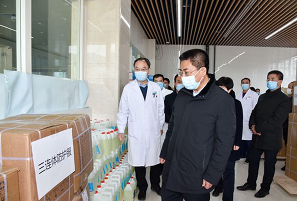 2月4日下午,长治市委书记孙大军、副市长景普秋一行到我院看望疫情一线的医务人员。首先到我院二期工程楼一楼,察看了设立在此处的长治市新型冠状病毒感染肺炎疫情防控应急物资储备库,详细询问了应急物资储备与供应情况。