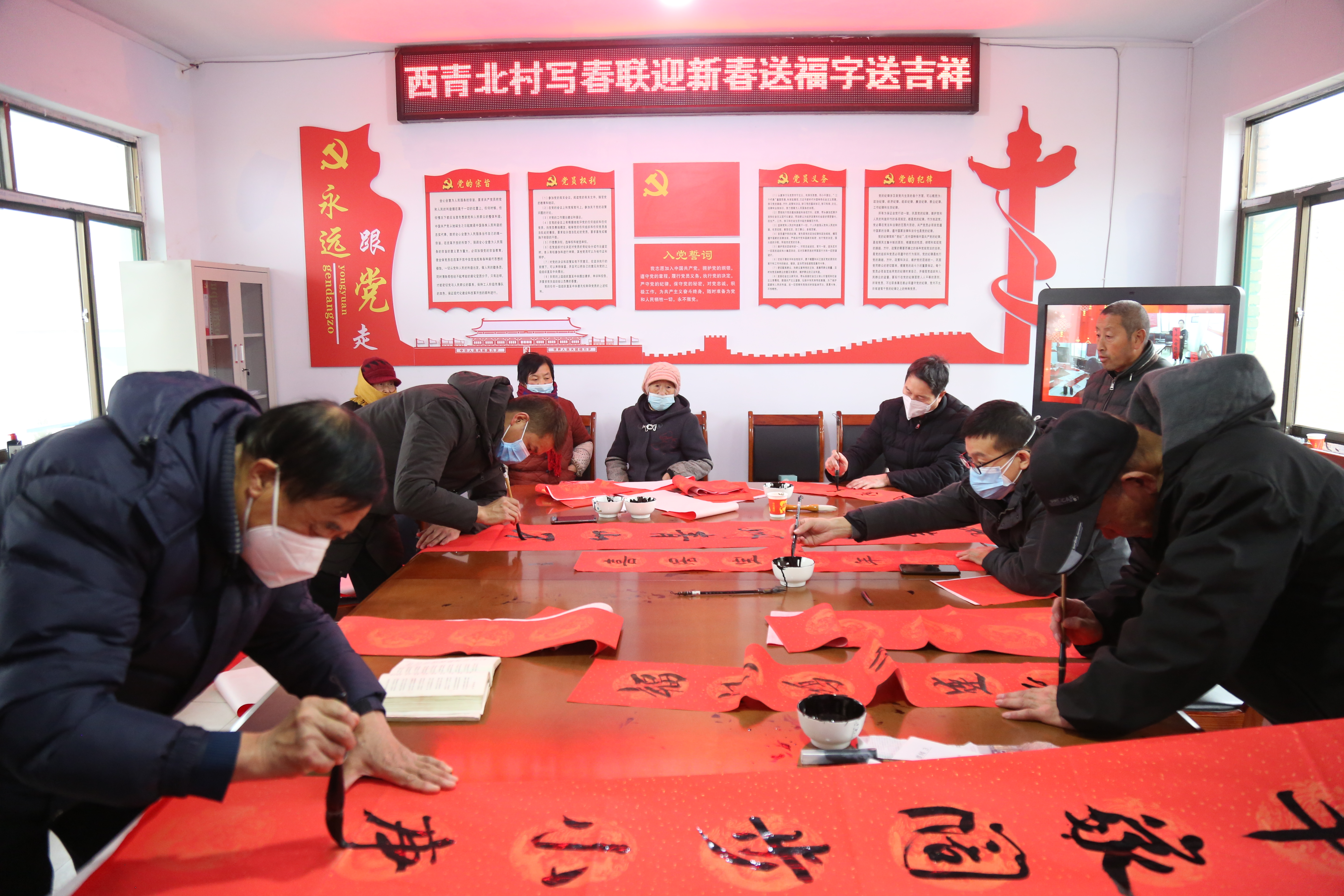 西青北村写春联迎新春送福字送吉祥活动现场