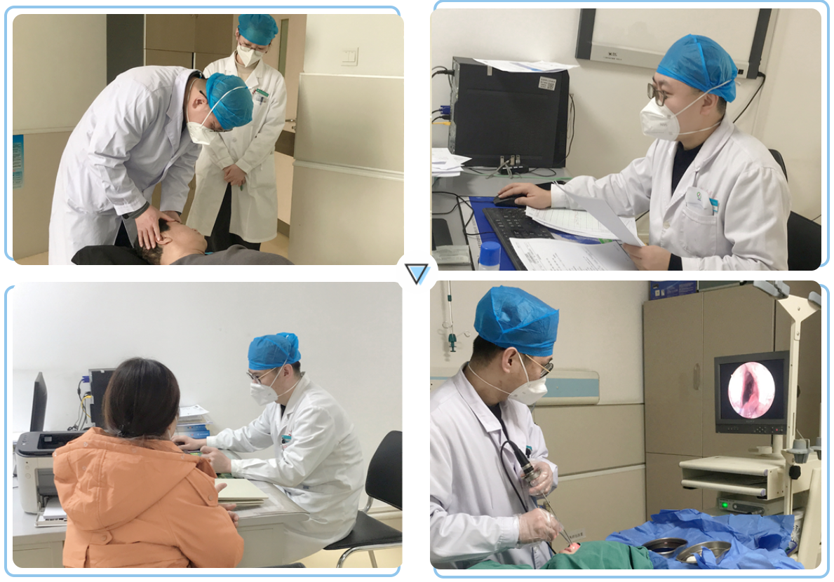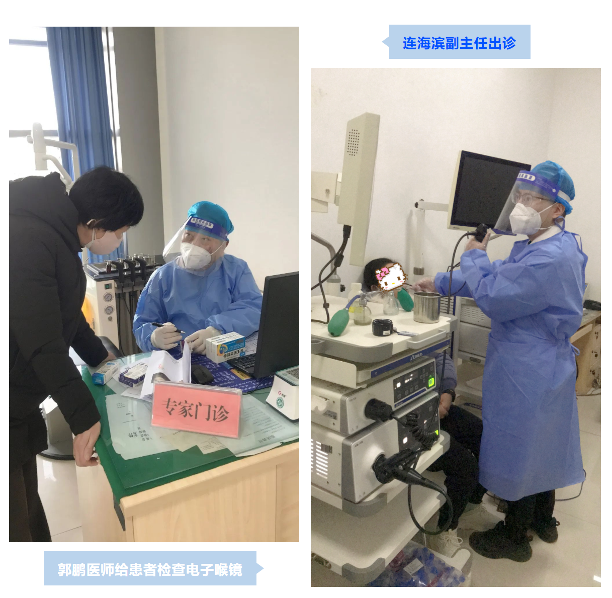 基于新冠病毒呼吸道传播的属性,面对在诊疗过程中近距离接触患者,查体中要暴露患者鼻、咽、喉,极易发生交叉感染风险,耳鼻喉科同样属于高危科室,前来就诊的不少患者出现了耳闷耳鸣听力下降、嗅觉减退甚至丧失、“吞刀片”、“宝鹃嗓”等专科性较强的症状,年近花甲的连海滨副主任及郭鹏医师,针对出现的种种情况,采用个体化的精准治疗方案,有效缓解了患者病情,减少了长期功能障碍的发生。结束一天的门诊后,口罩在脸上的勒痕、湿透的后背,成为了是他们别样的功勋章。