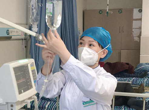在短时间内,科室收治的新冠病毒感染患者急剧增加,部分患者存在转成重症风险的时候,医护人员却几乎“全军覆阳”,医疗、护理工作压力陡增。秦江波主任顶着持续低烧、咳嗽、嗓子疼……他坚持吃住在办公室坐镇指挥,舍小家为大家,每天和在岗人员梳理每名病患的具体情况,认真巡查,指导工作。针对患有多种基础病的老年病患,进行多科会诊综合评估,寻找最优的个性化诊疗方案;对于危重症患者严密监测、敏锐分析,及时处理而转危为安。