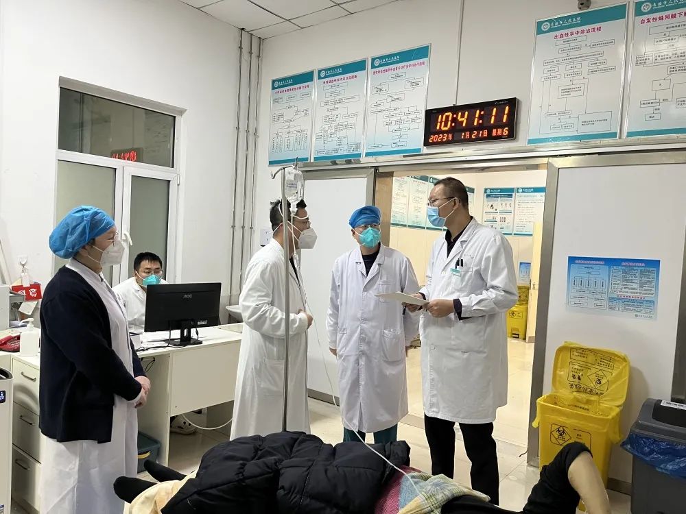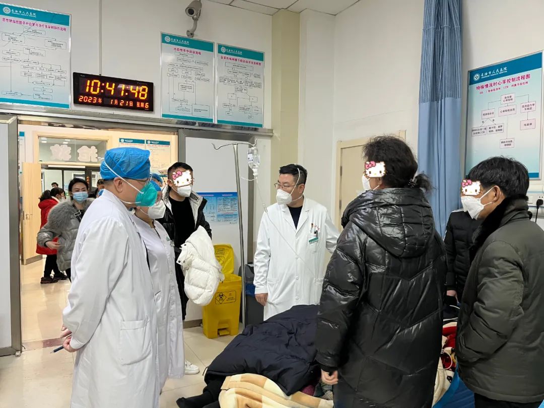 1月21日,农历腊月三十,家家户户忙着贴春联、剁饺子馅,为迎接新年做着准备,市医院急诊科一片忙碌景象,医护人员们脚不沾地地忙碌着,有序接诊、录入患者信息、输液、换药……抢救室大门开了又关,他们争分夺秒,与时间赛跑。
