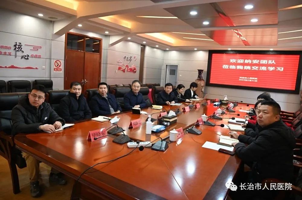 会上,李俊书记对山西纳安生物科技股份有限公司一行的到来表示了热烈欢迎。胡文庆院长从医院概况、发展现状、发展规划等方面进行了详细介绍,他希望双方多加强联系交流,积极开展相关课题合作,打造全方位一体的现代化医院。