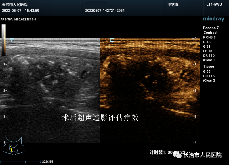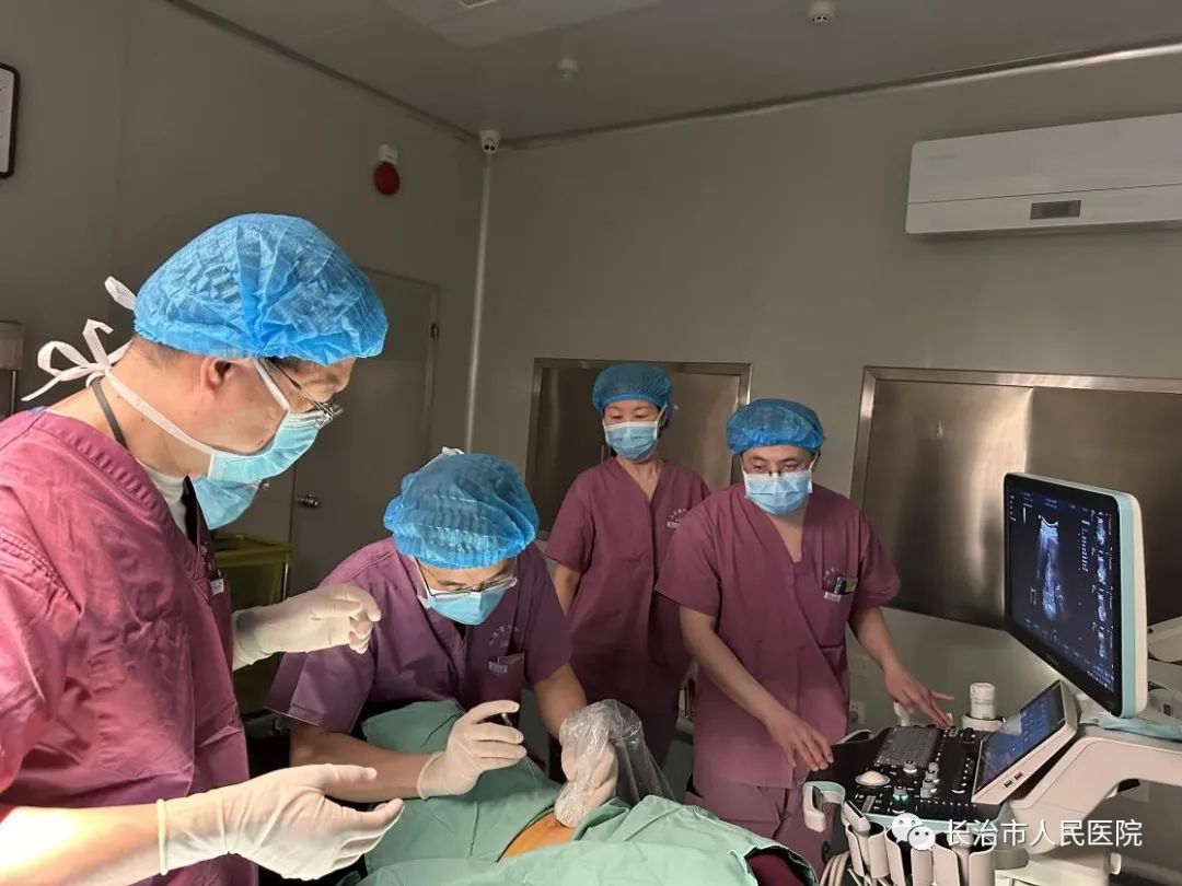 忙碌的一天里,崔教授为肩袖撕裂、狭窄性腱鞘炎、肌间血管瘤等疾病的患者做了诊断,并完成了超声引导下肝、肾囊肿硬化治疗,肝血管瘤注药治疗,甲状腺良、恶性结节消融术等十几例手术,我院超声医学科、甲状腺外科及日间手术中心医务人员观摩并大力协助,手术过程顺利。短短一天的时间,既为患者解除了病痛,又给观摩者展示了规范而行云流水般精彩的介入超声手术示教课。