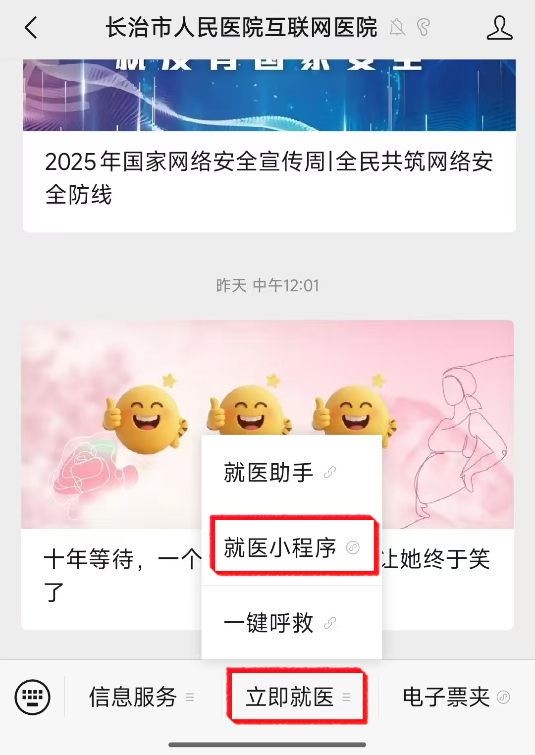 立即就医→ 就医小程序→ “云上服务台”
