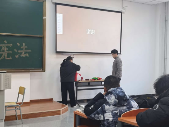 为检验学习成效,本次班会还设置有奖问卷环节。问卷围绕班会讲解的宪法概况、核心内容、重要意义等知识点设计,包含“宪法知识知多少”和“罪名猜猜看”两个部分,同学们积极参与作答,现场氛围热烈。何林川同学根据答题正确率及时间评选出前十名并现场发放奖品,既激发了大家的参与热情,又帮助同学们巩固了所学知识,达到了学以致用的目的。